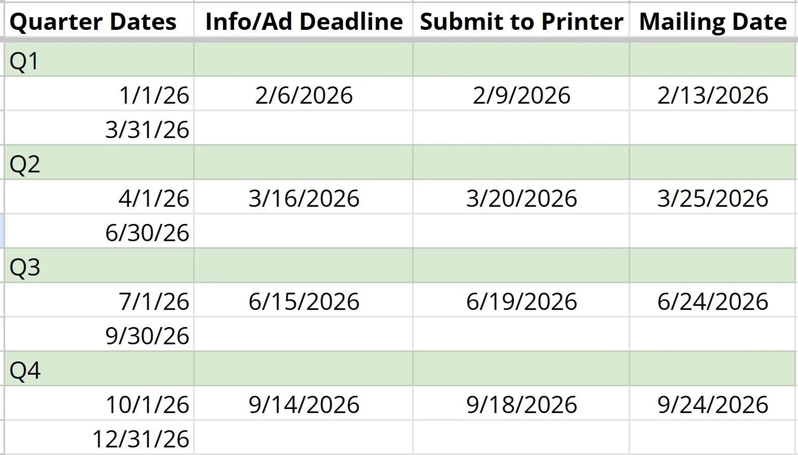 Print Newsletter Advertising (Quarterly)